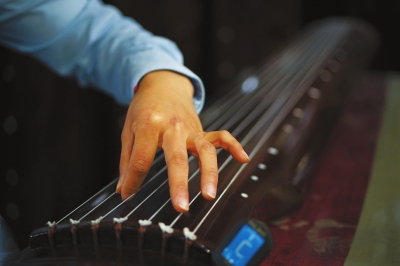 6月11日,兰考县崮阳镇徐场村徐瑞波的妻子在调试古琴,指尖滑过琴弦,优美的琴音绕梁不绝。