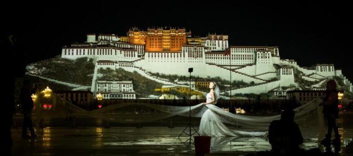 布达拉宫魅力不减 游客不惧寒冷冬夜“合影” (组图)